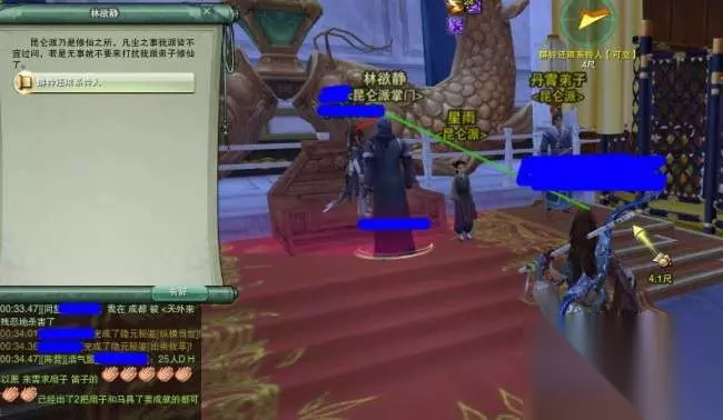 接下来玩家需要去地图最上面的玉虚峰拜会林欲静。 PS:顺便玉虚峰高塔有个轻功成就点,这是一个系列轻功成就,全部追完还会有一个小灯笼和称号[无痕],如果没有做的玩家可以顺路去做一下,现在开了轻功2.0登顶很方便。