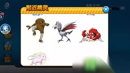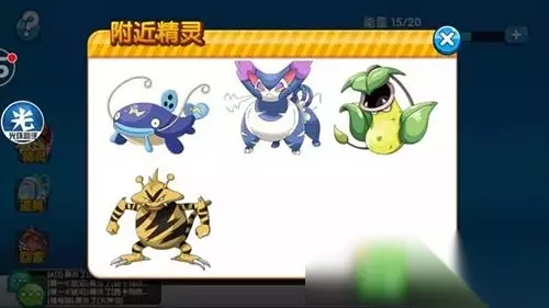 上图中,有一个精灵图标,打开后,会出现你所在区域的一个范围内可能会出现的精灵的分布,排列顺序从上到下稀有度逐渐上升。(图2)