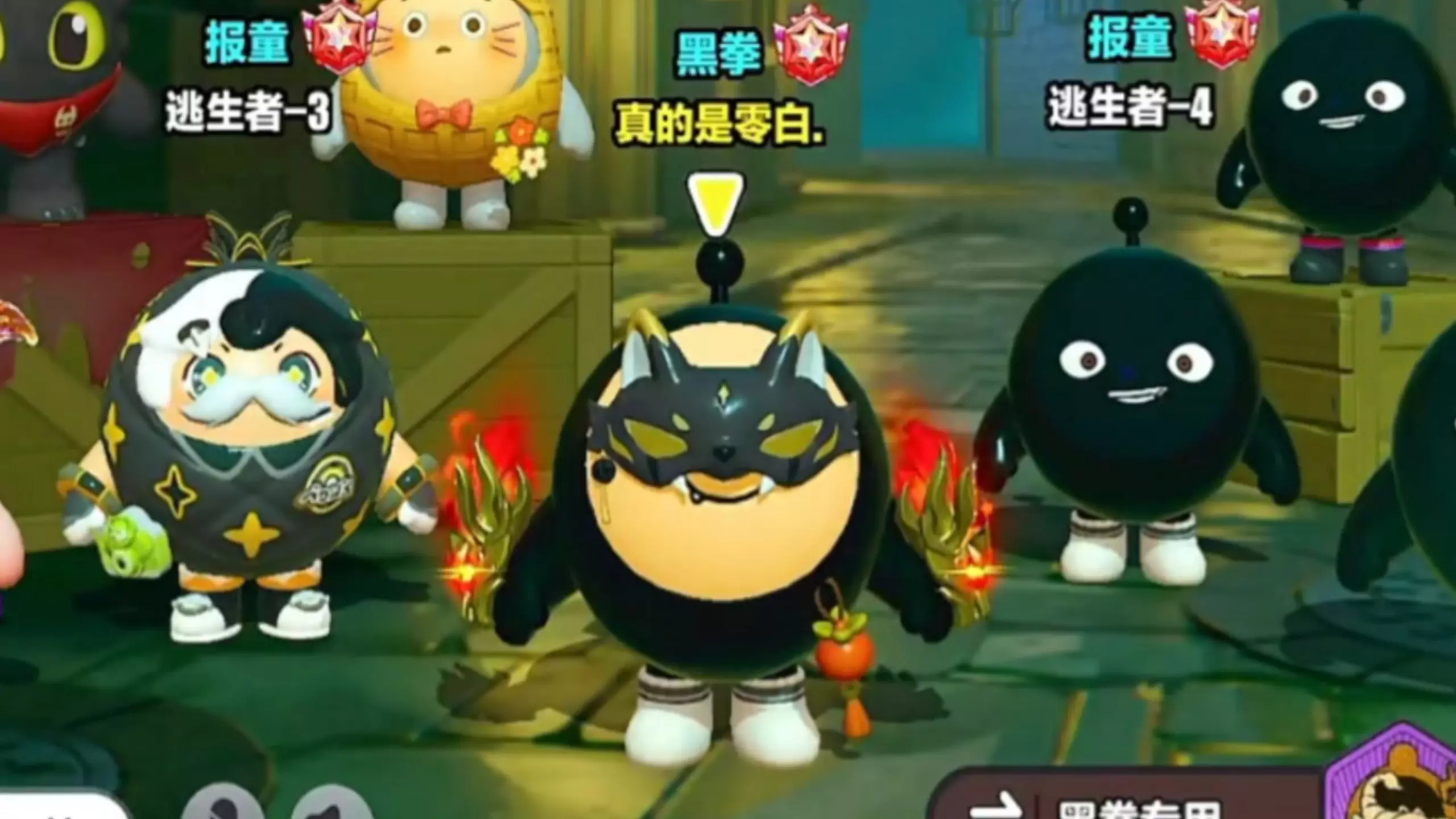 这是蛋仔派对的游戏内容,玩家使用黑拳角色进行游戏,在对局里展现操作,还被队友称赞,该玩家被称为公认的鞠躬流大师,在游戏里有着亮眼的表现。