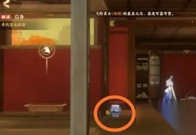 从主界面-风华录-解谜进入解谜模式,就可以开始我们的解密之旅了。 棋谱部分,与李淳风对话,寻找苍龙棋谱,向左走查看一下类似青花瓷的罐子。