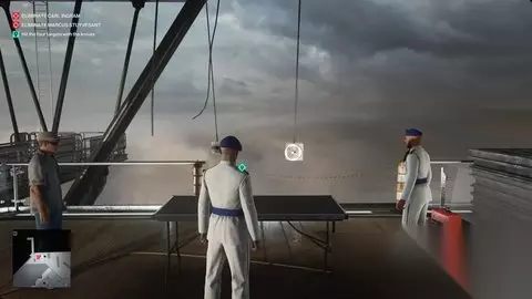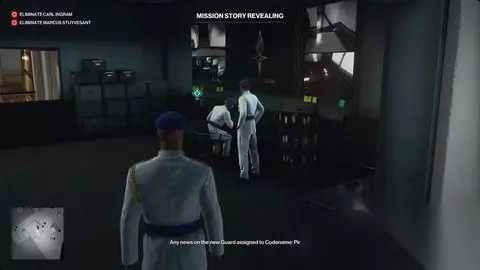 追溯到你开始任务故事的同一个安全室。宣布您的抵达并等待马库斯。当他到达时,给他转移文件。 ⭐跟随史岱文森到阳台//用刀击中四个目标