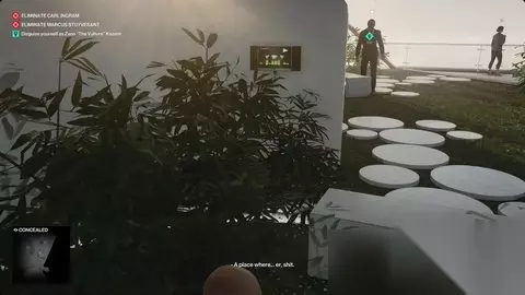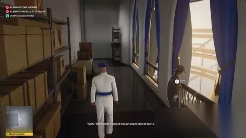 《杀手3》的“猛禽”任务故事要求47号特工扮演扎娜“秃鹫”卡泽姆,并为卡尔·英格拉姆(CarlIngram)做一份工作。 从大厅出发,向右走。穿过走廊,然后继续前往1楼的花园。你会走到一个与一些守卫争吵的男人面前,开始“猛禽”任务故事。 ⭐伪装成扎娜“秃鹫”卡泽姆