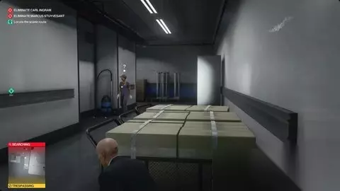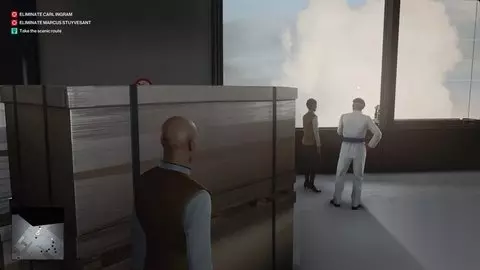 既然你在这里有两个目标,你不妨留下来消除它们。观看视频格雷项目一会儿。等待两个人接近屏幕,并拍摄枝形吊灯以赢得有影响力的艺术暗杀挑战。你还可以从房间的右侧拿起权杖模型,获得口袋大小的帝国发现挑战。 无论你杀死英格拉姆和史岱文森,把两具尸体都藏在安全房间面板附近的箱子里。之后,您可以打开百叶窗,冷静地走出去。