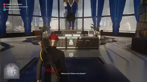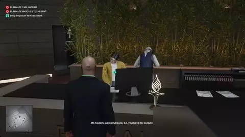 走楼梯一直回到会议室。您会在顶层公寓接待处找到助理。给她英格拉姆目标的照片,然后再次跟随她。 她将带您一路前往5楼的主人套房。走进去,和英格拉姆谈谈。这将完成“猛禽”任务故事。