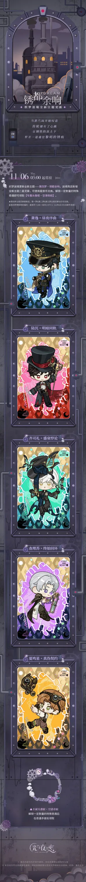 活动说明:织梦迷境更新全新主题——第四梦・锈都余响,迷境商店新增【全新主题二星灵犀】——萧逸・昼夜序曲、陆沉・明暗同轨、齐司礼・盛衰悖论、查理苏・终始回环、夏鸣星・真伪契约,可使用星旅币兑换。解锁一定数量的特殊奇遇即可领取【专属头像框・空港奇航】。