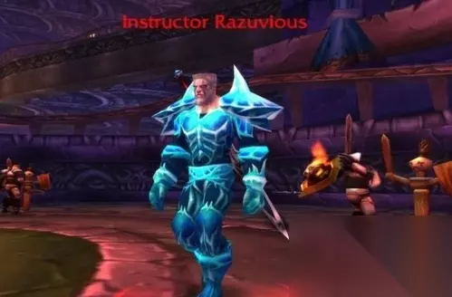 拉苏维奥斯导师,HP=3350k/10120k。物理攻击造成高达约70k 的伤害。 瓦解咆哮:对场上所有队员造成4.5k/7.5k伤害。没有击退效果。该技能没有冷却时间,导师随心所欲地使用,但一般间隔时间为15-20秒。 锯齿之刃:投掷一把匕首,对一名成员造成5.5k初始伤害,并在接下来的5秒内再造成10k伤害。该技能没有击退效果,与崩坏咆哮一样随机使用,但间隔时间一般为10-15秒。 不平衡打击:造成3.5倍伤害的打击,并附加降低目标防御100级的效果。每6-8 秒使用一次。 死亡骑士学生,HP=40万。物理攻击造成约4k伤害。 血袭:瞬间,造成50% 的武器伤害。 嘲讽:迫使目标攻击自己,并接管前一个目标产生的所有仇恨。 20秒冷却。 骨盾:20秒内减少自己受到的所有伤害75%,冷却时间30秒。 教官在训练场巡逻,旁边还有2/4的死亡骑士学员。 普通难度:战场入口处有两块精神控制水晶,任何人都可以使用精神控制水晶来控制死亡骑士练习生(方法如下所述)。两台坦克要轮流控制2名死亡骑士练习生。 英雄难度:在受保护祝福保护的牧师的精神控制下开始战斗。应立即约束一名学员,并将其余学员放在一边备用。 杀灭方法