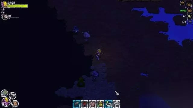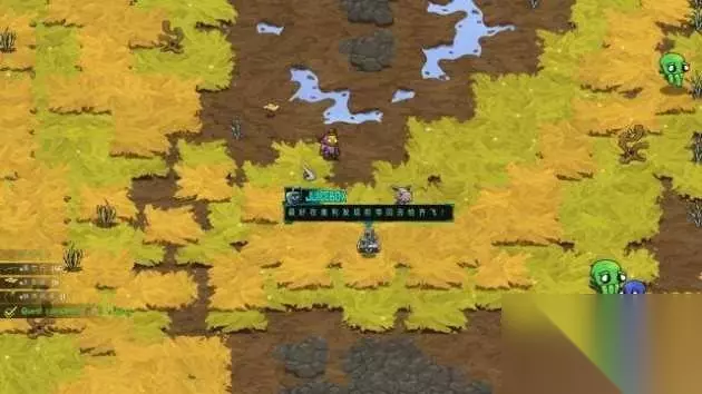 支线03:看不见 step1.Juicebox需要Flux去调查一下光源。打开地图可以发现在逃生囊西北面被标记了,前往搜索范围圈内就可以找到一个光源装置,虽然它被环绕,但Flux可以在水面上放置木板作为小桥,之后他就能取得光源设备。 自从获得这个光源设备,以后在夜间,Flux的武器就会发光照亮他的周遭(不过即便有这种光照,有些变异的怪物,在夜间还是难以判断它们的特征)。