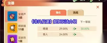 在非凡仙途中,捉妖可是一项充满趣味与挑战的活动。掌握好技巧,你就能轻松捕获各种珍稀妖灵,让它们成为你闯荡仙途的得力伙伴。 了解妖灵习性 不同的妖灵有着各自独特的习性。有些妖灵喜欢在特定的地点出没,比如深山的洞穴、清幽的湖泊边。了解它们的习性后,就能更有针对性地去寻找。比如水灵妖灵,常在有水的地方活动,你可以多去河边、池塘边碰碰运气。 准备合适工具 要想成功捉妖,趁手的工具必不可少。捕妖网是主要工具,根据妖灵的等级和稀有程度,准备不同品质的捕妖网。低级妖灵用普通捕妖网,高级珍稀妖灵则需要高级捕妖网。同时,还可以准备一些增加捕捉成功率的道具,如妖灵诱饵。 战斗技巧