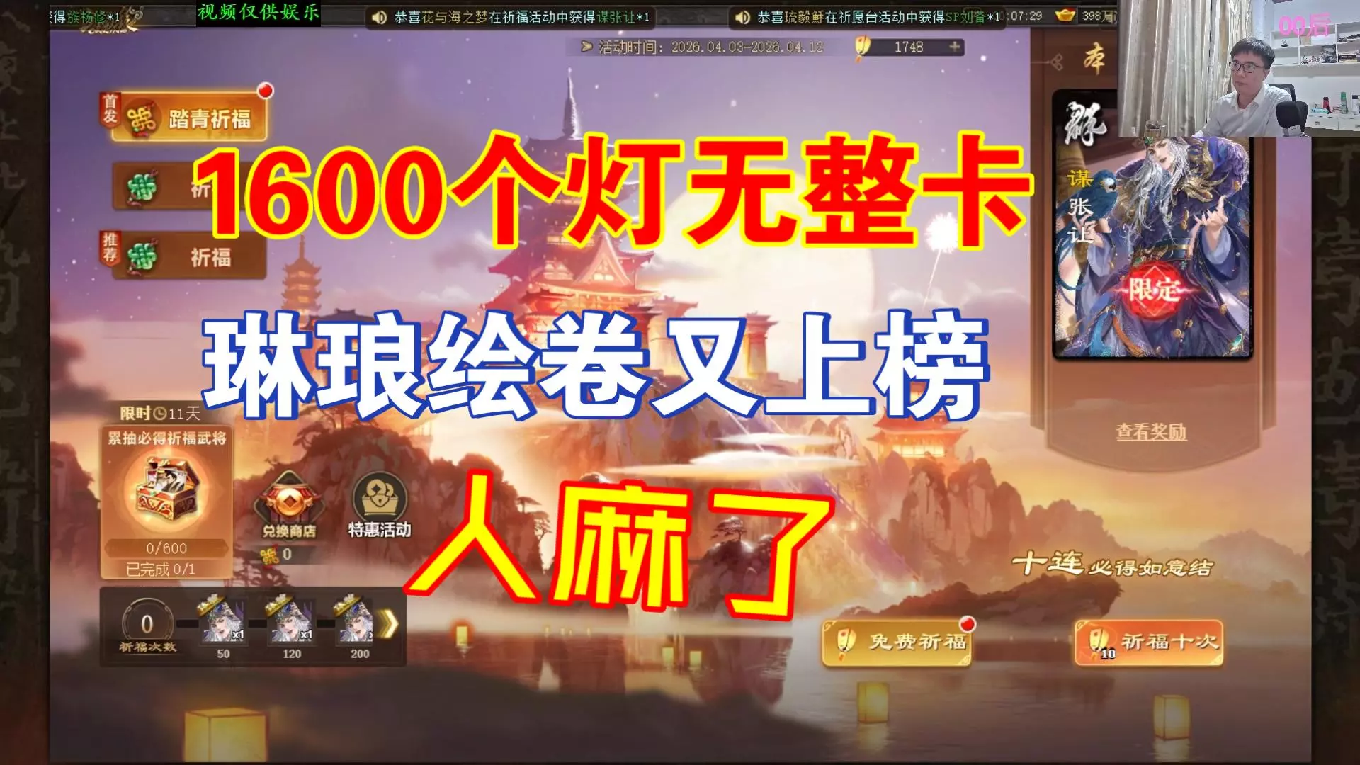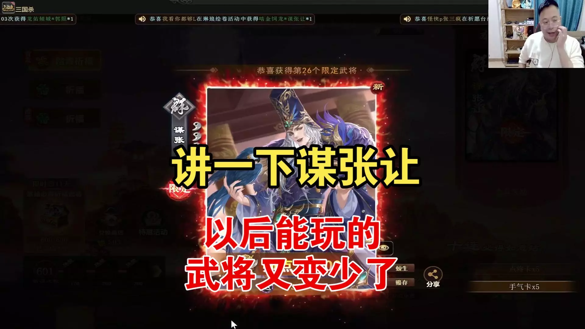 带货总监不做教学我做@名将杀炎帝V ——不行啊总监你不做教学我心里面没底啊꒦ິ^꒦ິ,这个武将强度绝对有500节的,但是不推荐,因为涨价,400节我直接强推,斗…