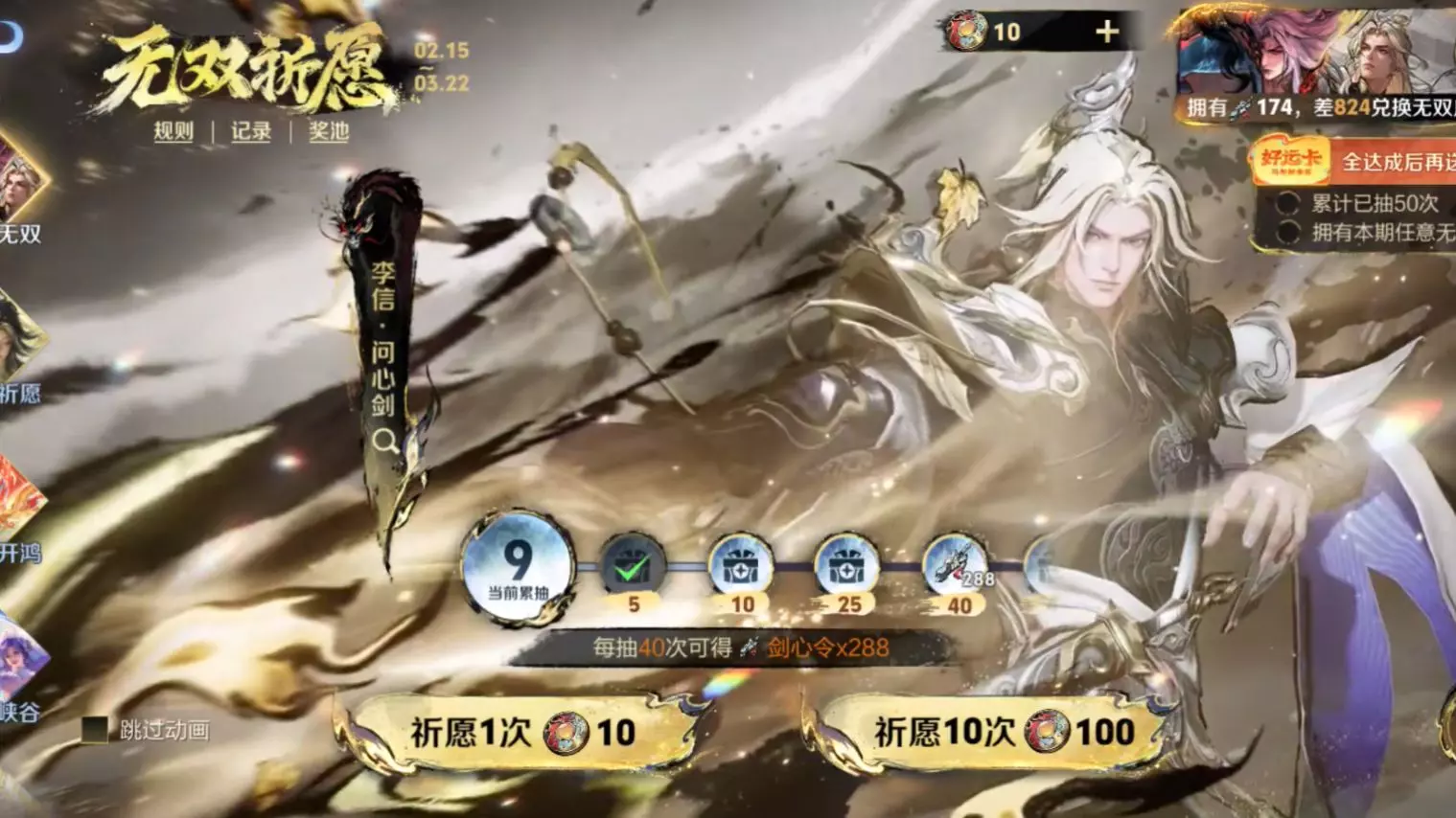 孩子们,想抽李信无双一定一定一定要记得买好运卡,不然很亏的。