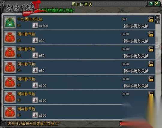 【周年礼包 年度回馈】 10月23日前,大侠都可以前往“周年庆使者”处购买【十九周年大礼包】、【周年脉气包】等好礼,周年称号“侠心万里十九载”限时售卖!
