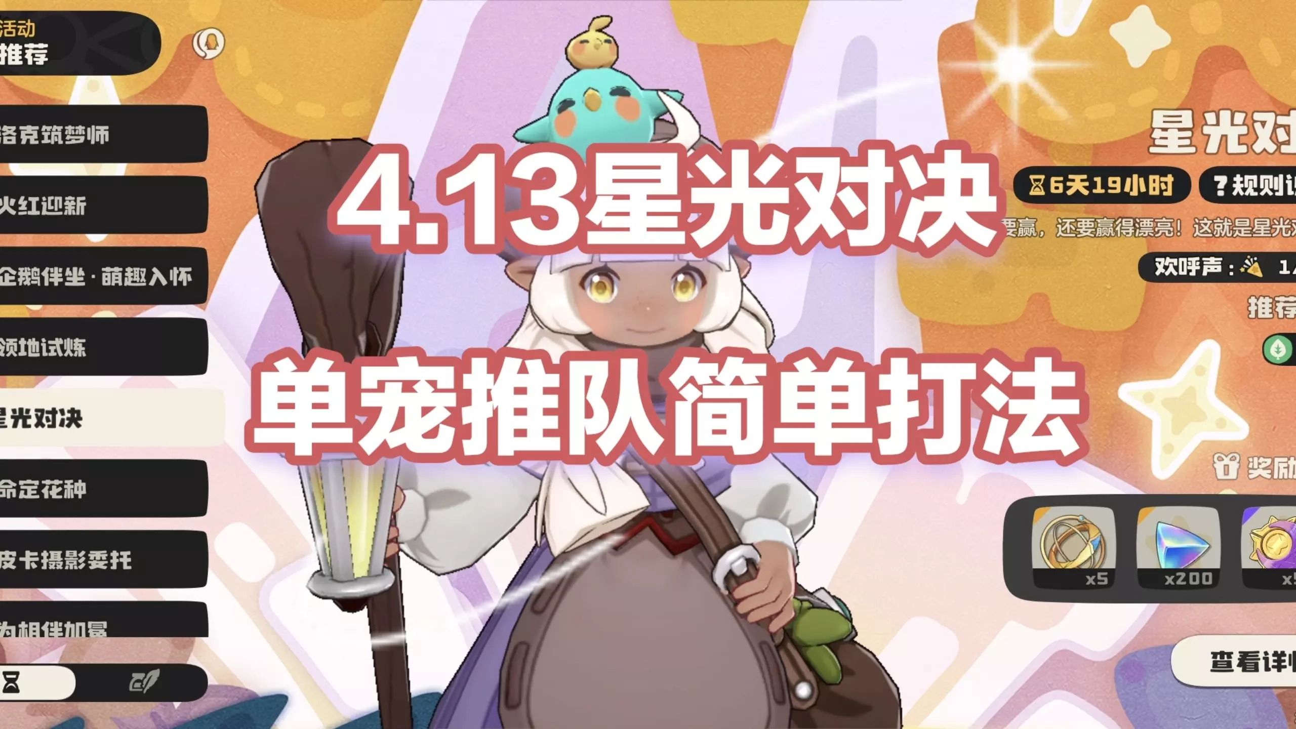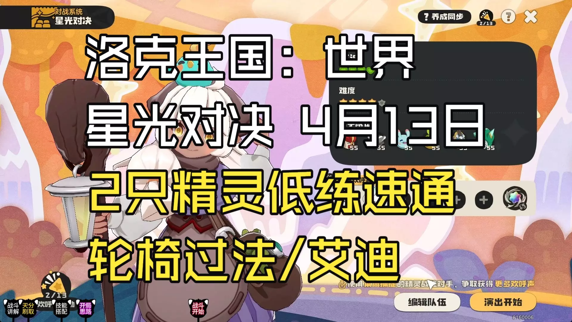 这是洛克王国世界第四期星光对决的单刷教程,展示了未觉醒的伊贝粉粉单刷最高难度星光对决艾迪的打法,比如遇到绅士鸡首发时使用纤维化技能等对战技巧。