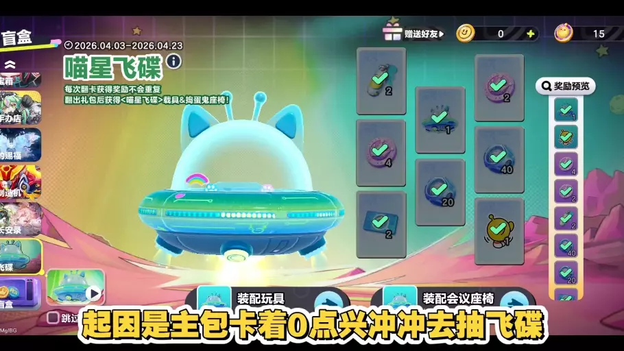 蛋仔派对推出喵星飞碟载具抽奖活动,它被称为蛋仔史上最便宜的载具。该活动前三抽每次消耗4许愿币,4-8抽每次消耗8许愿币,8次必出包含喵星飞碟载具和座椅的礼包,保底仅需52许愿币,远低于常规载具价格。