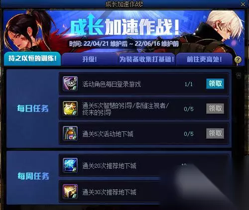 接入方式1: 收集成长数据卡的一个方法是完成挑战角色的任务。完成不同的任务会获得不同的奖励,包括成长数据卡。对于任务,朋友们可以让具有挑战性的角色做日常任务,或者他们可以做每周任务和其他任务。