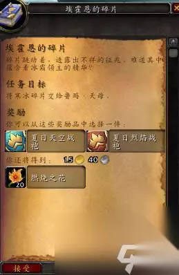 2、点击这个碎片就会出现一个【埃霍恩的碎片】的任务,提交任务就可以选择获得【夏日烈焰战袍】的奖励。