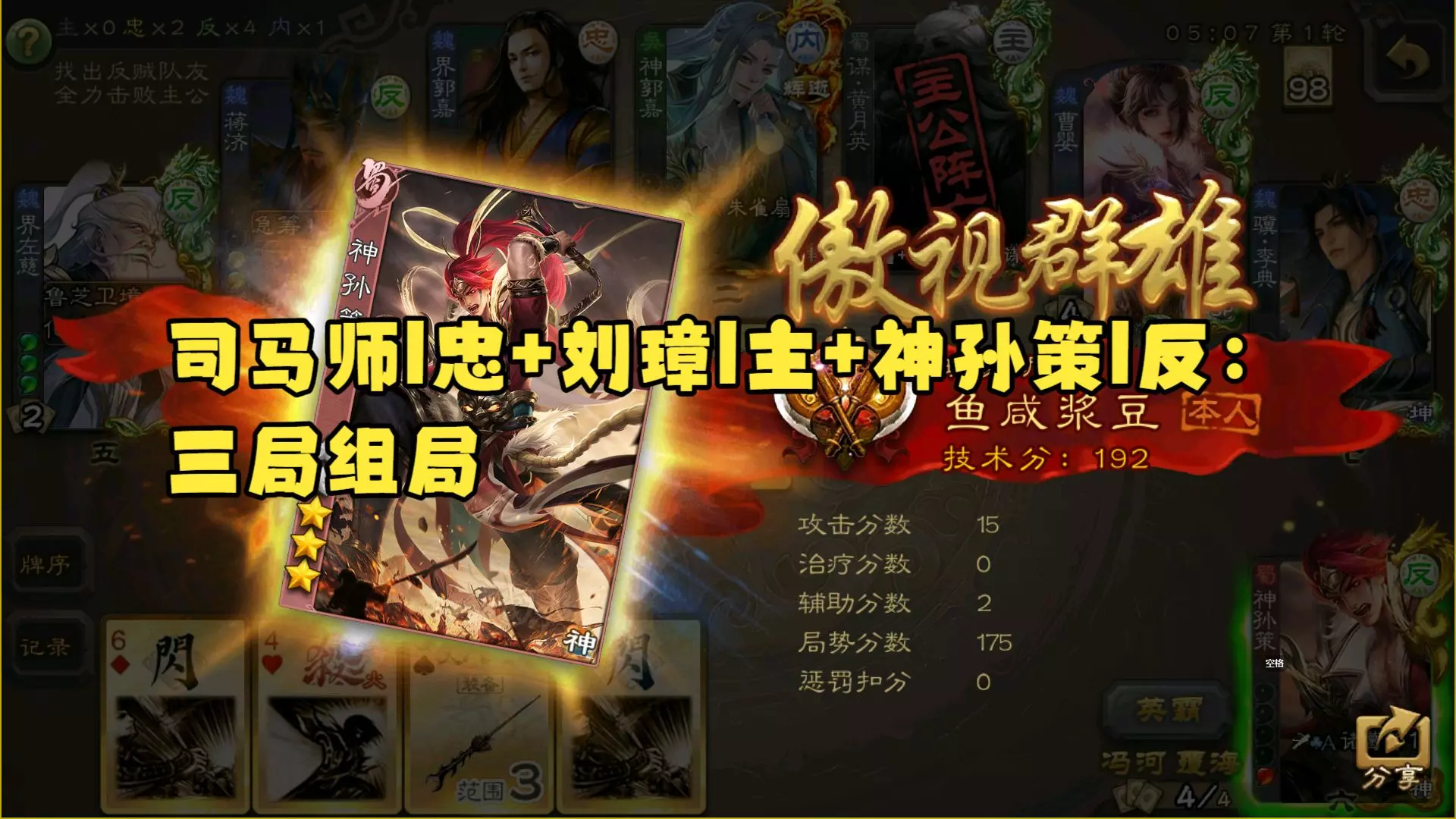 这是三国杀山河图·北望炼狱5难度的速通直播录像,玩家使用司马师仅用1分17秒就完成通关,堪称山河图速通界的天花板操作。