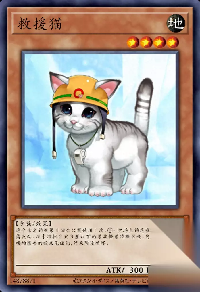 综上所述,救援猫卡片在游戏王中的效果强大,尤其是在“猫僧同调”战术中扮演着关键的角色。然而,随着游戏的发展和平衡调整,救援猫卡片在 2010 年 9 月被禁止使用。尽管如此,它仍然在游戏王的历史中留下了深刻的印记,成为了玩家们回忆和讨论的焦点。对于喜欢游戏王的玩家来说,救援猫卡片不仅是一张卡牌,更是一个时代的象征。