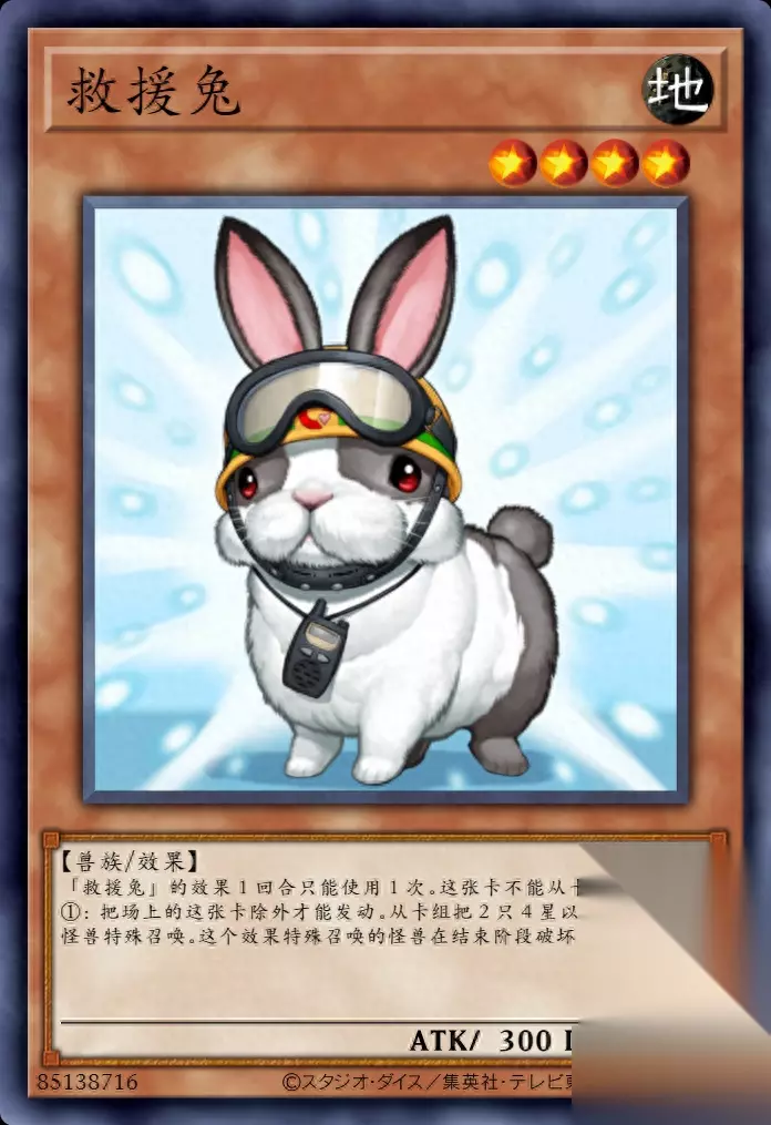 救援猫1卡出大怪的这种卡牌设计思路,在后面也几乎是成为了救援动物系列的传统艺能。并且除了救援兔被额外限制,其他救援动物都是4星地属性的缘故,可以被召唤僧检索。于是从上古流传下来的“猫僧同调”战术,在现代也有了新的发展和继承。只不过救援兔和救援鼠对应的是超量,救援雪貂则依然还是同调。