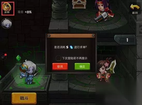 超级英雄2 当玩家挑战胜利“废弃之地2(5-3)”后,开启[幻境塔]功能。幻境之塔分为10层,每挑战1层都可以获得一定量的宝石。 [幻境塔难度] 幻境塔每日5点刷新,刷新后的怪物强度是启用刷新前玩家的最高战力决定的。也就是说玩家越强幻境塔的强度越大。正所谓遇强则强。下面为大家分析下幻境塔的强度比例值。 幻境塔分10层,前面已经介绍了。见表: 层数 战力 第1层 60% 第2层 70% 第3层 80% 第4层 90% 第5层 100% 第6层 110% 第7层 115% 第8层 120% 第9层 130% 第10层 140% 通过表可知1-10层,会是挑战玩家自身最高战力的60%——140%。 怪物的战斗力怎么分配?前面说过怪物的强度是根据玩家的战斗力决定的。我方主角占总战斗力的比例越大,敌人的主角占的总战力也越大。 有人一定会问:幻境塔的强度和玩家的战力有关,那么玩家第一次接触幻境塔时,战力怎么来?在这里告诉你一个诀窍,第一天的幻境塔的强度是根据玩家第一次挑战幻境塔得到的。换句话说就是第一天越早挑战幻境塔难度越小。 [求神] 点击左上角“求神”可增加队伍属性,增强战斗实力 Ps:求神需要花费砖石