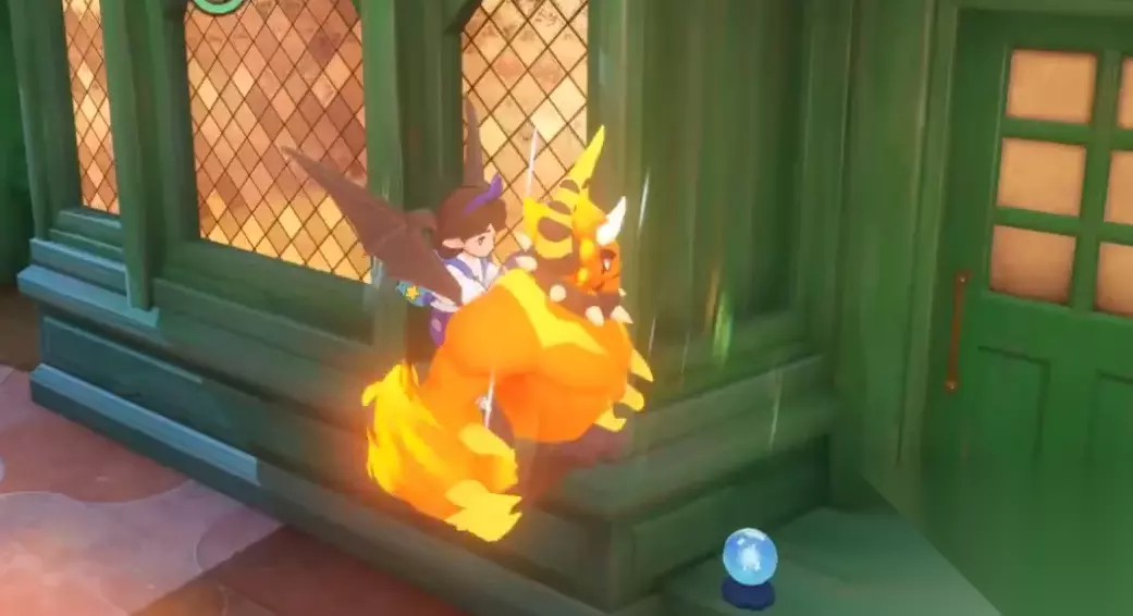 屋檐上面会有蓝色水晶球,总共会有5个水晶球,第1个在绿色房子的门前,第2个在推车右边的房子屋檐上,第3个在右手边的长椅子上,第4个在广场中间的立柱下,最后一个在旋转门右边机器人的肩膀上面。