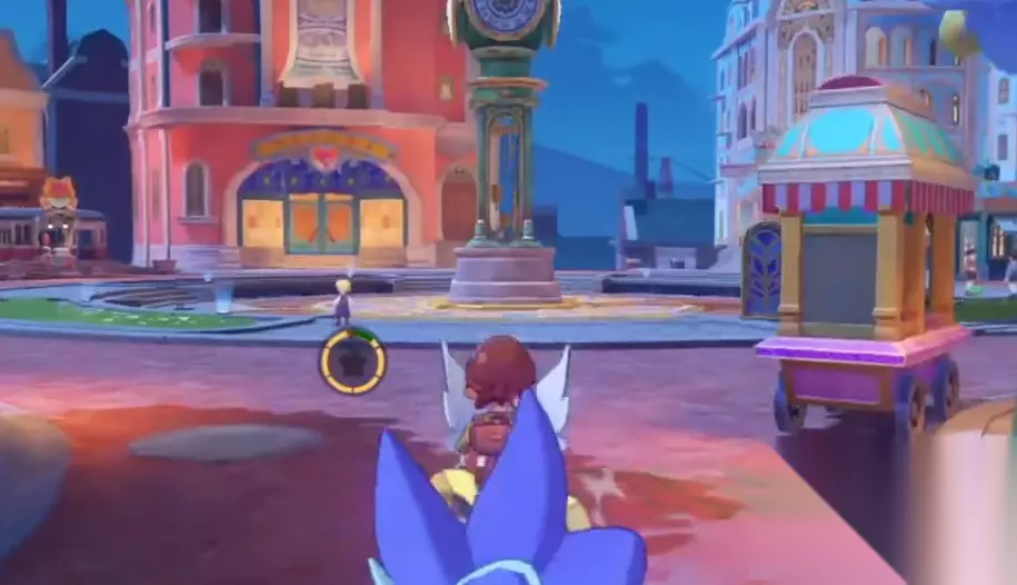 水晶屋隐藏秘境的位置在洛克里安地界下方的小镇上,由于需要条件才能解锁,所以大家先传送到彼得大道的魔力源处,传送过来后我们直接向着前方奔跑,奔跑到下图这个推车的附近,然后我们向右边的房子的屋檐上开始飞。