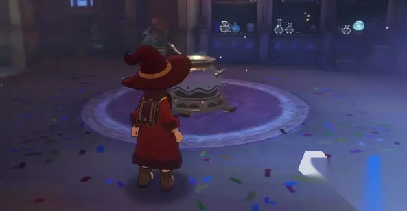 书架的上方还有三个游戏币的隐藏奖励,前往不要遗落,一共拿到两个黄色水晶球、两个蓝色和两个红色后,到前方的炼金锅处,将水晶球分别放入到炼金锅当中就能解锁奖励,包含记忆石的蛋、损坏的国王球、王国徽记等等,等待大家领取。