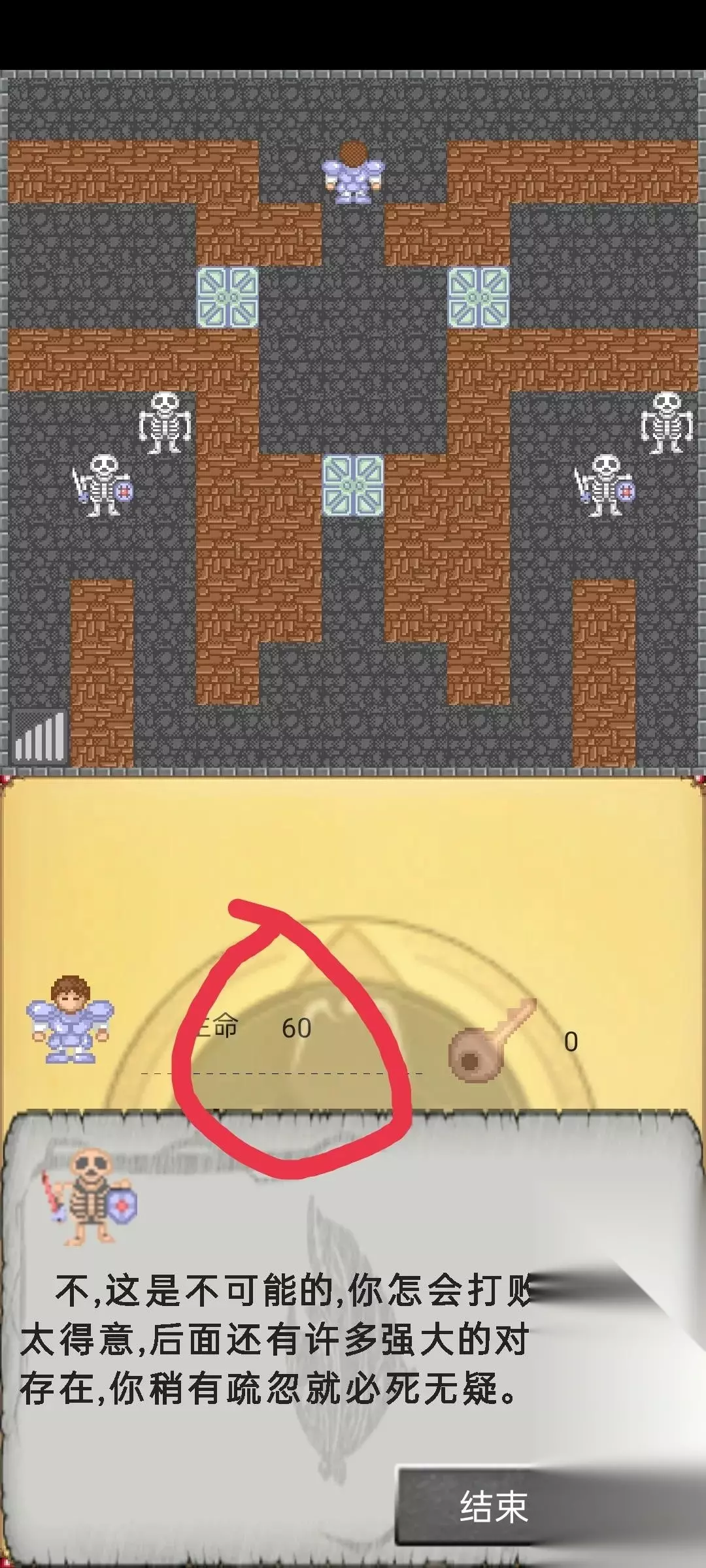 最后一步去第一层获得血包反正吃完这两个后血量要在637以上,然后直接去第10层打boss,最后的通关血量差不多60左右。