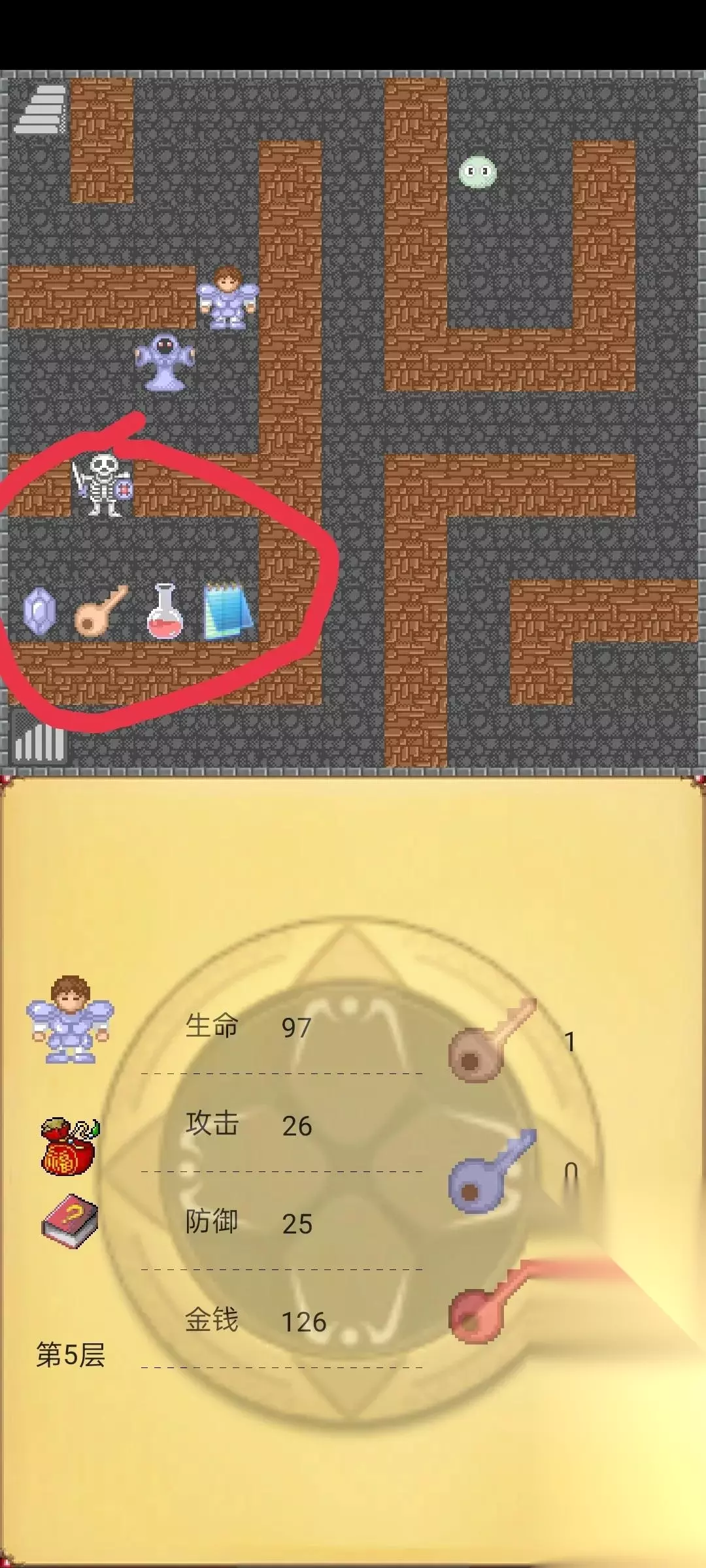 大家好,这一期呢还是攻略继上期没更完的继续,上次我们已经到了魔塔第3层打完左上角巫师了,状态如下图。
