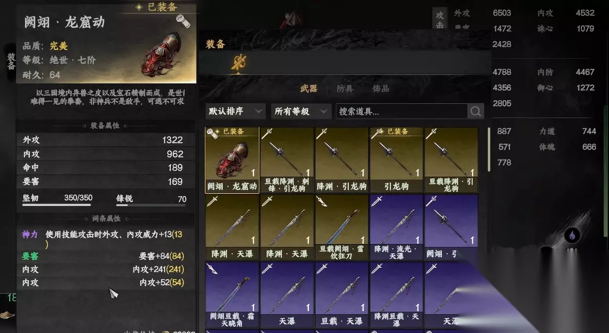 至于武器和装备的选择,可以根据需求来进行定制,最好选择那些加外功和刚性的装备。装备的强化效果直接关系到武功的发挥,想要让降龙十八掌的每一击都带有极高的伤害,这部分的投资是必不可少的。在装备属性上,多关注加外功伤害和刚属性的词条。毕竟,降龙十八掌是以爆发力著称,装备的选择一定要以提高输出为主。