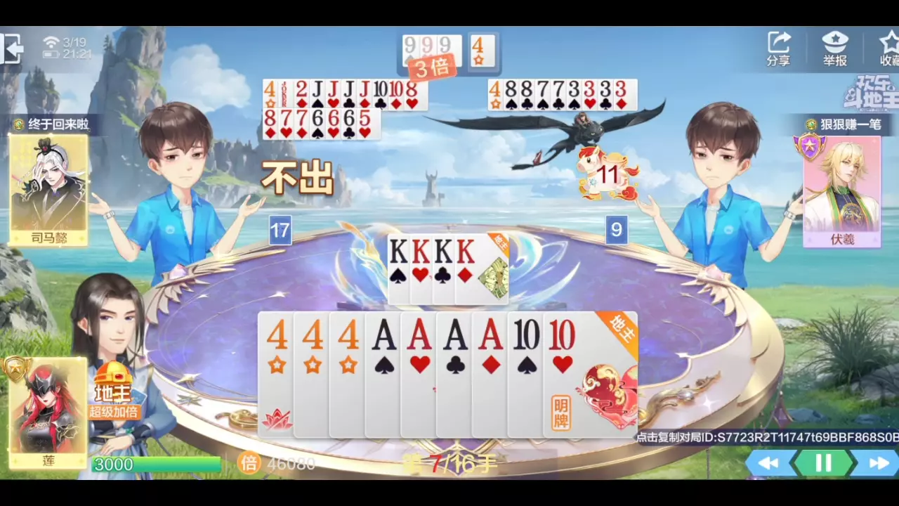 这是欢乐斗地主的对局分享,楼主在不洗牌新手场的对局里,遇到配合默契的高手队友,两人打出精彩配合,过程趣味十足。