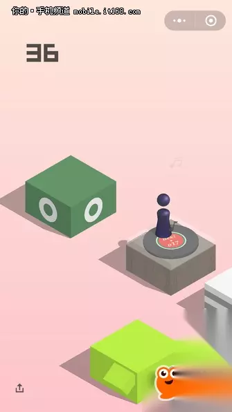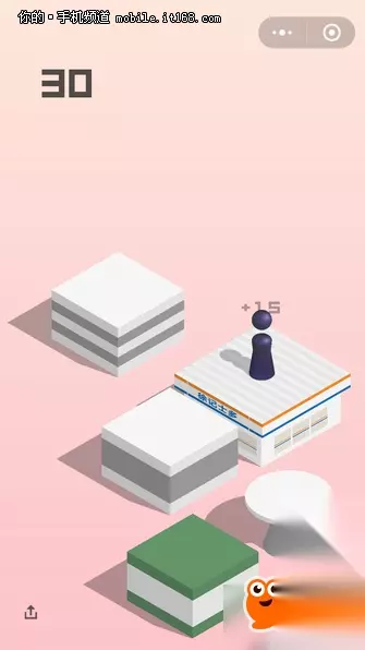 想要玩出高分,一方面要跳跃的“箱子”足够多,也需要落点足够准确,以获得分数加成。同时为了增加趣味性,游戏中还暗藏了一些彩蛋,可以获得额外的分数,简单汇总如下: 跳至音乐盒上停留会播放音乐,+30分;跳至便利店停留会开门,+15分;跳至停留会旋转,+10分;跳至井盖上停留会有冲水声音,+5分。 尽管彩蛋可以获得额外分数,但是以笔者经验,停留会打破原先保持的节奏与手感,不利于接下来的游戏,建议还是有所取舍。