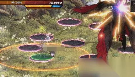 机制1:法阵 1、当Boss释放全屏攻击时会生成数个法阵,站在法阵内会出现结晶体; 2、玩家站在结晶体下方跳跃后按攻击键抓住结晶体浮空来躲避; 3、当在状态下接近Boss时候按空格,可减少Boss约5%~10%韧性。
