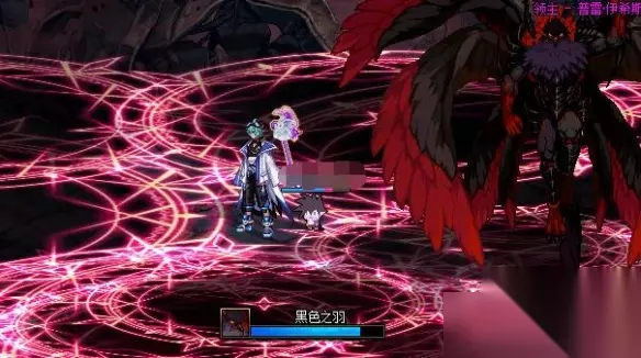 机制1:黑色之羽 Boss使用扩散魔法阵覆盖整个场地,等读条结束直接格挡躲。