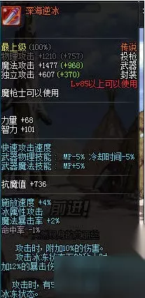 暗枪士是DNF更新之后上线的新职业,有很多预约了的小伙伴可能还不怎么会玩,不知道选什么武器好,很家或许搞不定SS,但是传说还是买得起,买什么传说装备比较好呢?今天小编便给大家带来DNF暗枪士85传说武器的选择推荐,一起来看看吧。 DNF暗枪士85传说武器推荐: 其实玩家可以选择释魂武器的,这次魔枪士升级活动还是会赠送给玩家释魂武器的,这也算是可以用的。 深海冰逆 属性比较稳定的武器,暗枪攻击频率高并且buff持续100秒,常驻10白字12爆伤,没有爆伤的同学可以买个用用。