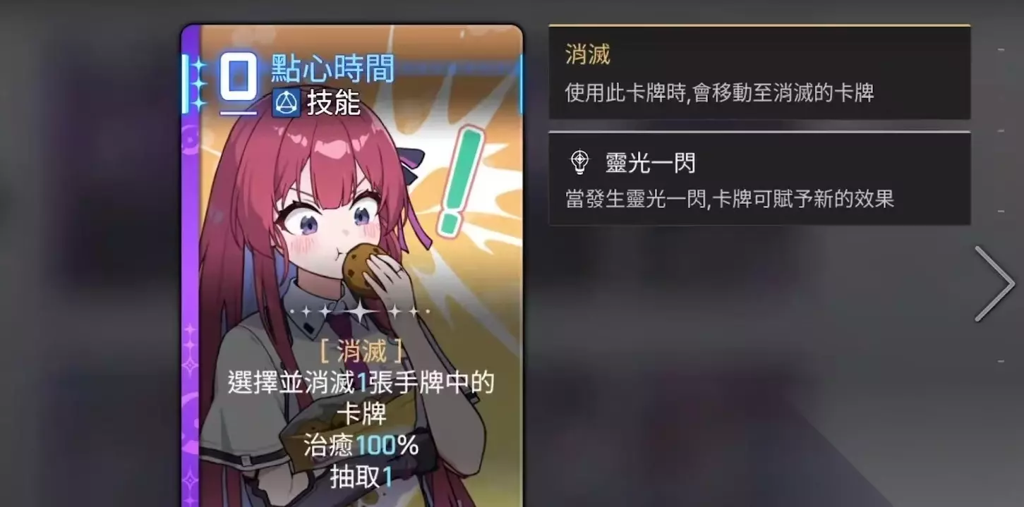 第三张是点心时间,选择并且消灭一张手牌中的卡牌,还能附加治愈和抽取。第四张是暗黑凝聚,选择一张手牌里的攻击牌,一回合之内伤害量增加100%。第五张是掠食者之刃,该技能卡牌伤害非常高,还能在一回合之内增加士气。自我意识技能是最后的暗影,造成高额伤害后获得一点ap,这个技能既可以打范围伤害,还能打断敌人的动作,给队友创造输出机会。这个角色在游戏中的核心定位是辅助,既有控制又有一定的输出能力。首先她是队伍里非常优质的增伤辅助,比如独特的共鸣之暗牌,就可以提升低配卡牌的伤害。对于路克、梅林等依赖低费卡输出的角色,搭配之后,可以显著提升整个队伍的爆发。