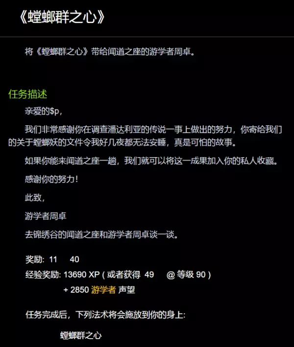 【相关推荐:灰布短裤图纸价值说明】 魔兽世界螳螂群之心成就怎么做 前置要求角色等级达到110级,完成破碎群岛的初始剧情。 角色的智慧达到四风,具有能在潘达利亚飞行的能力,才能进行成就任务完成。 通过特定地点的传送门前往锦绣谷去找传说文物。