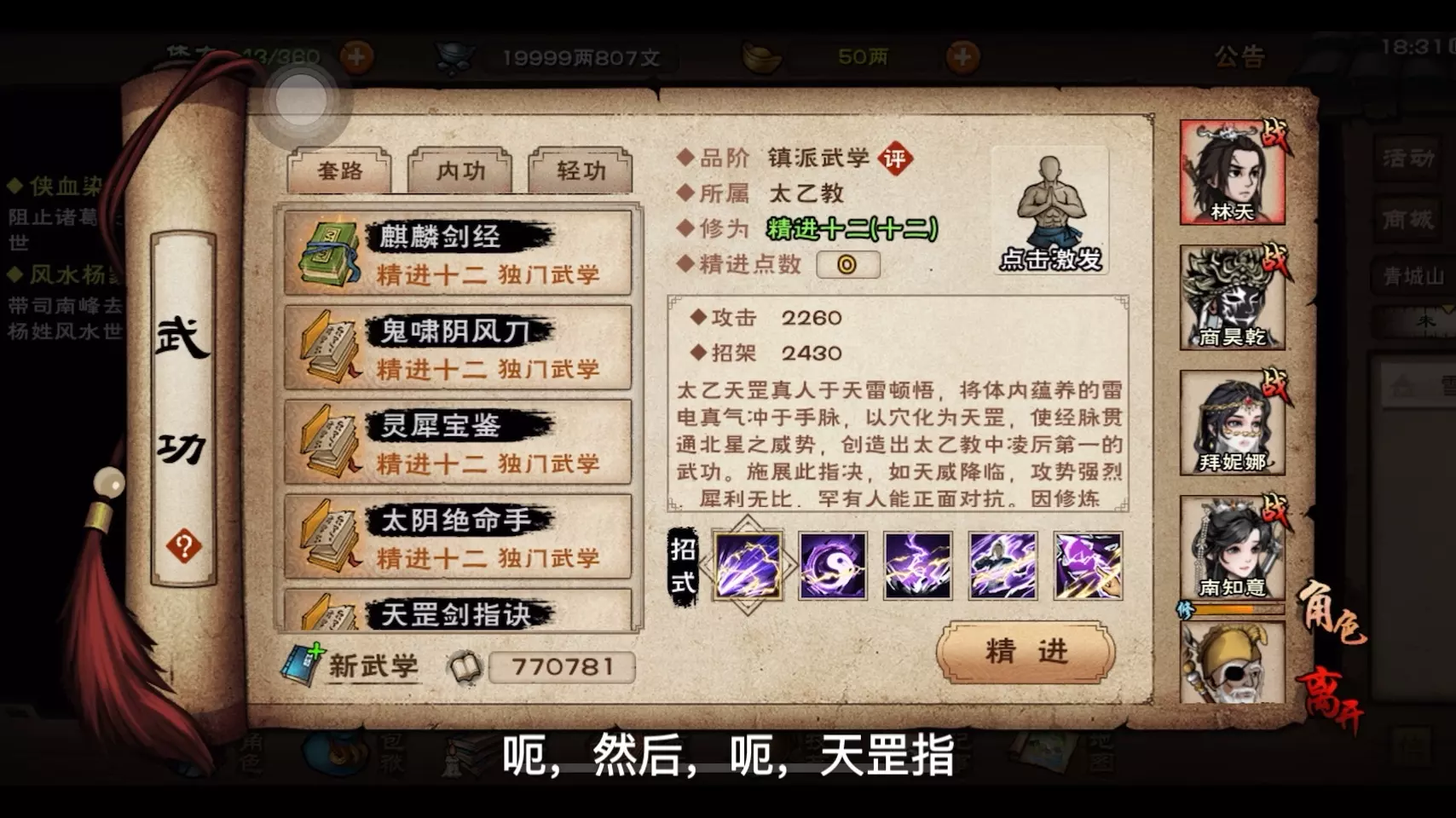 随从的选择看起来更多,但是平分到三个随从上每人可选择的武学也没多哪儿去,练度才是王道