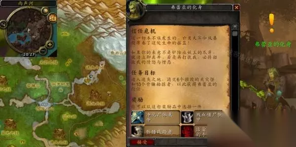 魔兽世界怀旧服WLK信任危机任务完成攻略。不少玩家可能还不太清楚游戏中的这个任务如何完成,下面233乐园带来具体的攻略,供各位玩家们参考。 信任危机任务攻略 接取等级:77(需要寒冷天气飞行) 接取NPC:弗蕾亚的化身(索拉查盆地,雨声河) 完成NPC:弗蕾亚的化身(索拉查盆地,雨声河) 奖励声望:无 任务开始: