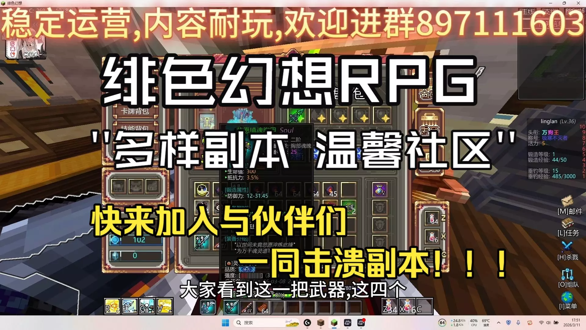 理想大陆・原创 RPG|新开荒火爆招新🔥 精美简洁 UI|沉浸式养成|不快餐、不秒刷 🔥 服务器特色 纯正原版理想数值 | 多种主线副本全开放 世界 BOSS|限时活动|趣味钓鱼|高爆率掉落 拒绝快餐碾压,主打沉浸式冒险养成 ✨ 超多原创系统 强化|锻造|合成|分解|称号|时装 战令|卡牌|战斗视图|每日任务|怪物导航 团本 | 第二篇章 | 独立副本 | 🎁 萌新上线直接起飞 进服就领专属炫酷神装,超高属性 + 帅气技能! 💪 轻松养成不坐牢 锻造 + 英灵双系统助力推图 掉落拉满|兑换成本大减 每日在线领世界 BOSS 奖励 长期稳定更新,养老 / 肝帝都能玩!