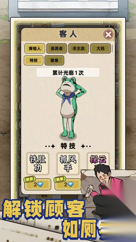 《解忧小食光》游戏的整个图景氛围都充斥着一种让人心神飘荡的意境感,在今天你将制作出各种风味的美食,来见证的客人每一次眉开眼笑的咀嚼,游戏加入了许多正向的情感反馈机制,我们可以从顾客的神态表情就能察觉食物是否合口了,而且游戏设计的每个制作环节,都对应着一道菜谱。 扫码下载该游戏 高速下载 普通下载 优先233乐园APP下载 2、《厕所创业记》