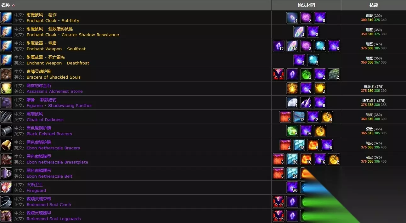 在魔兽世界这款游戏中,源生暗影可以用于制作装备和药水,在进行死亡霜冻、魂霜、强效暗影抗性、狡诈附魔时,也会用到源生暗影。玩家在制作黑色虚鳞护腕、黑色虚鳞胸甲、黑色虚鳞腰带、救赎灵魂束带、灵魂卫士便鞋或深邃暗影腰带时,都需要用到源生暗影。