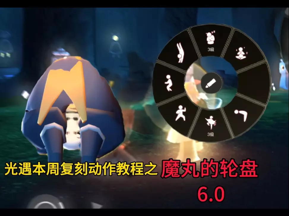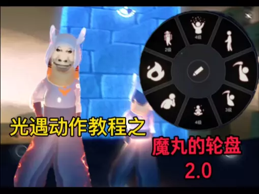 这是光遇组合动作教程,展示了名为“魔丸的轮盘”的动作玩法,该动作转动速度取决于手速,还呈现了该互动动作和普通聊天互动的区别,帮助光遇玩家掌握特殊组合动作。