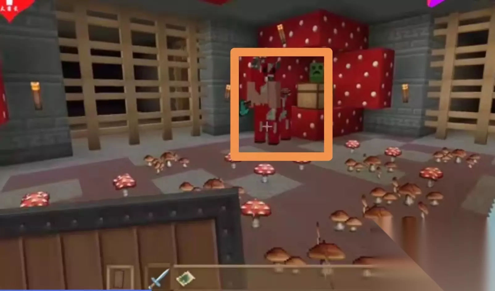 ②极光塔(冰雪女王) 冰雪女王生活在塔的顶端,击杀她后可以有极光方块作为建筑材料。