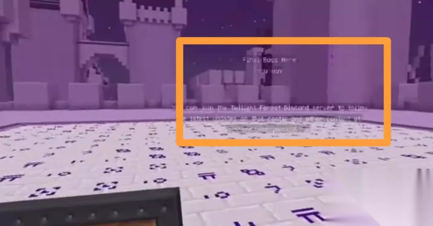 六、步骤六:高地城堡(巨型战士) 1、这一步最后一步。主城堡顶部会有一紫色力场房间,上面写着“最终的boss在此,你胜利了”。