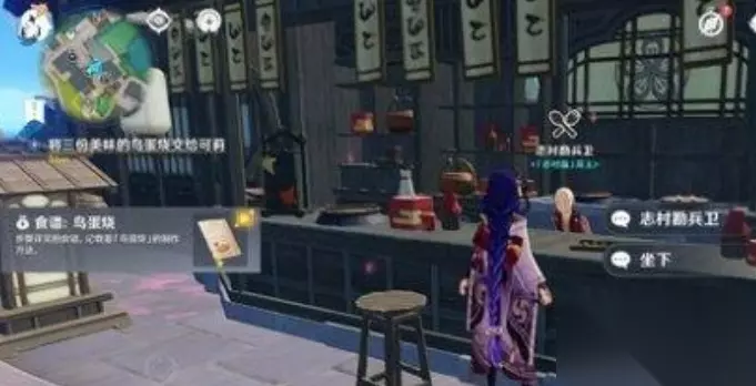 鸟蛋烧食谱在哪: 1、首先我们需要来到冒险家协会接待员——凯瑟琳这里。 2、在凯瑟琳的对面找到志村勘兵卫,然后点击互动,然后选择想看看菜单。 3、我们就能看到一个食谱就是鸟蛋烧,点击购买即可。