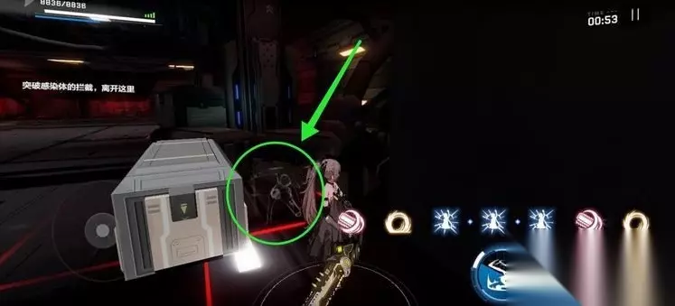 点击进入七实的间章“友人”篇,先“打围猎场中”。进入关卡后速度清理掉头两波小怪,然后先不要走进标记点,从后面绕到下图中这个明显和场景色调不搭的箱子背后。