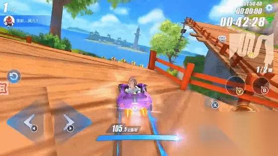 1、开局会有一个拱桥出现,但并不建议各位玩家直接从拱桥上通行,由于这个拱桥坡度极高,因此会损失大量的移速。而如果选择从拱桥右边的木板通行,则可以使用两次小喷,有助于拉开和其他玩家的差距,通过木桥后将车辆靠右行,则可再触发两次小喷(第二圈如果有大喷,则可以从拱桥通行,毕竟这样会飞的比较远)