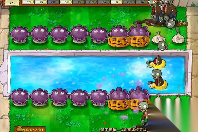 坚不可摧关卡的核心策略在于合理分配初始5000阳光,构建攻防兼备的植物阵容。推荐优先选择高坚果、双发射手、火炬树桩、寒冰菇等基础植物,搭配一次性消耗品如樱桃炸弹作为应急手段。泳池区域必须配备荷叶与高坚果组合,陆地防线则需保证每排至少两列双发射手配合火炬树桩实现伤害翻倍。阳光分配应预留10%-15%用于中后期补充防御缺口,特别是针对铁桶僵尸和橄榄球僵尸的突袭。