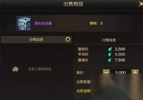 4.其中重要的问题就是如何设置单价,每件商品的单价会由系统设定一个价格区间。 在上架道具时,默认“平均价”,若某件道具售价不断高于平均价,且持续高涨,那么该道具的价格区间也将会有突破,反之,价格区间会更低。