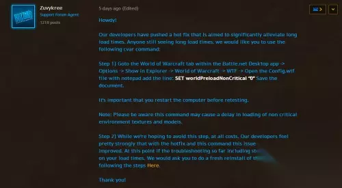方法1 第一种是网速问题,你可以通过下载某样小文件(1M)左右测试下网络如何,延迟如何。如果网络无问题,这个就可以排除。 第二种是你使用的插件过多,加载时CPU占用量过高。可以试图关闭一些CPU高的软件(一般是把杀毒的关掉). 第三种是你系统配置问题。如果配置不是太高的话,就在帐号输入界面将配置调到最低。 第四种是你游戏内部问题。建议用wow自带的修复工具修复一下试试。 方法2 第一步:打开你的魔兽世界安装文件夹>WTF>然后通过记事本打开Config.wtf这个文件,在其中加上一行SET worldPreloadNonCritical "0"。然后保存。 在你重新打开游戏测试之前,请切记重启一下电脑! 注意:要注意的是,在使用这个命令以后,可能会导致一些环境和模型的显示延迟。 第二步:在其他所有东西都尝试过之前,我们希望你们能避免使用这一步。我们的开发者在发布在线修正的时候还是很自信的,这个问题这个指令都是可以很好的被解决的。但是,到了这份上,如果你们在采取了第一步以后还是卡蓝条。那么……我们只能建议你……通过战网重装一下游戏了。 以上就是233乐园为大家整理的关于魔兽世界怀旧服卡蓝条解决方法攻略的全部内容,希望能对大家有所帮助,祝大家游戏愉快!